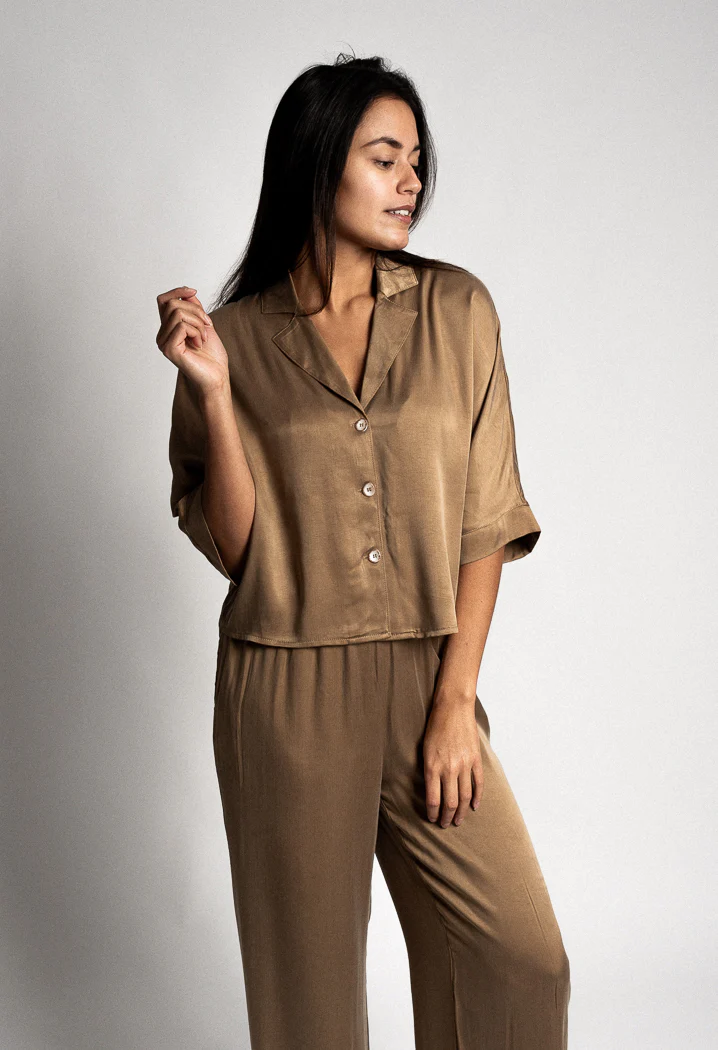 Hoe mooi is deze broek! Een prachtige soepel vallende stof met een subtiele glans. Gemaakt van 66% cupro (veganistische zijde) en 34% viscose. Op vele manieren te combineren, bijvoorbeeld met een bijpassende top of ga je juist voor contrast met een embroidered blouse of misschien een print? Het is aan jou!
