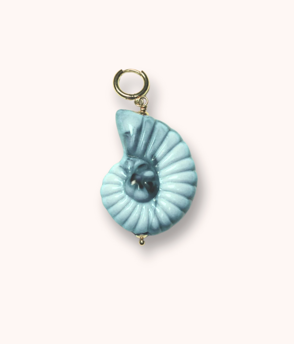 A glossy blue ceramic shell with a soft marbled look. ~ Size: 4 cm ~ Material: Ceramics
