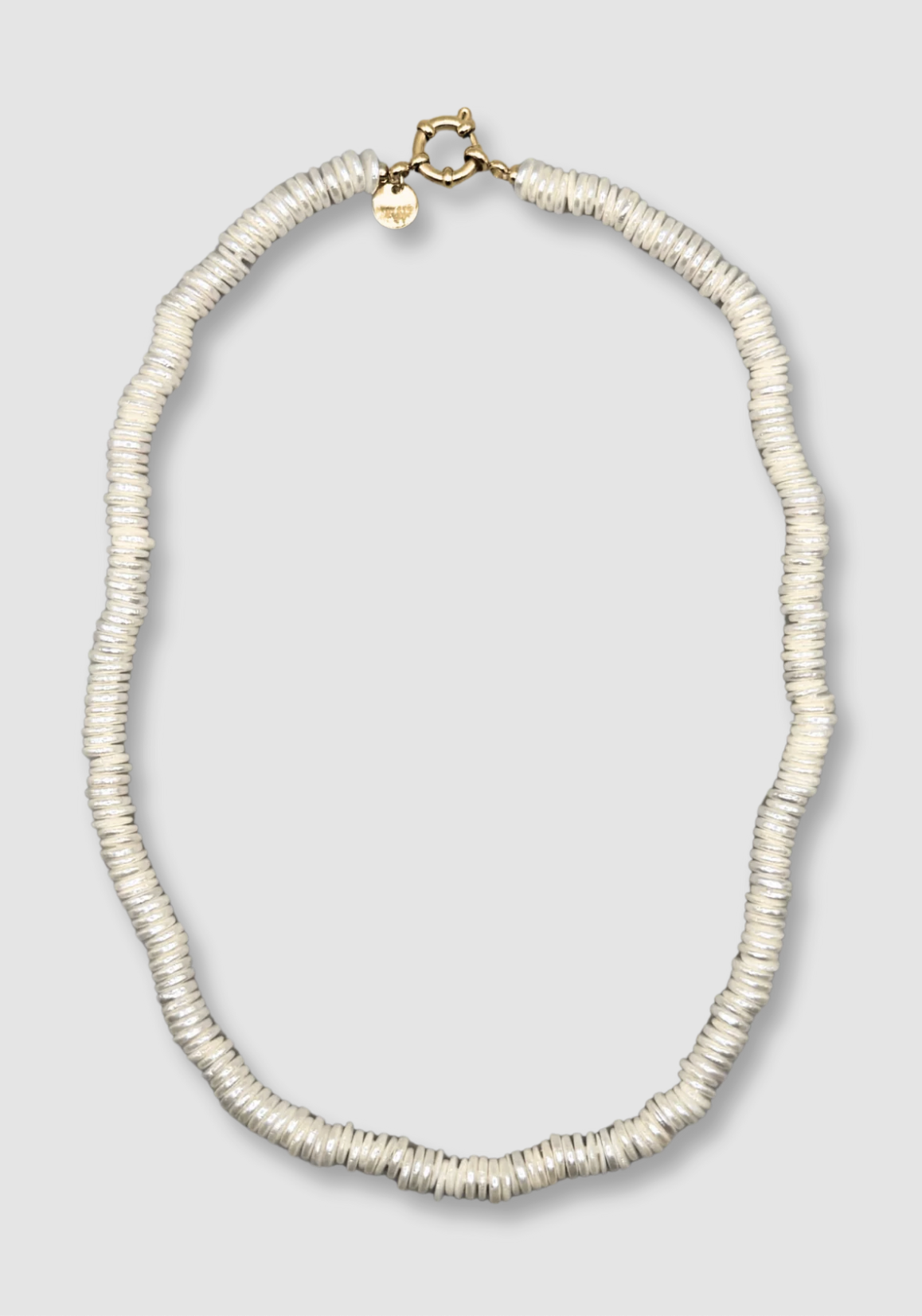 Soft, milky shell pearls with a lustrous glow. Classic elegance with a modern twist. ~ Length: 48 cm ~ Material: Shell Pearl ~ 14K gold-plated stainless steel clasp