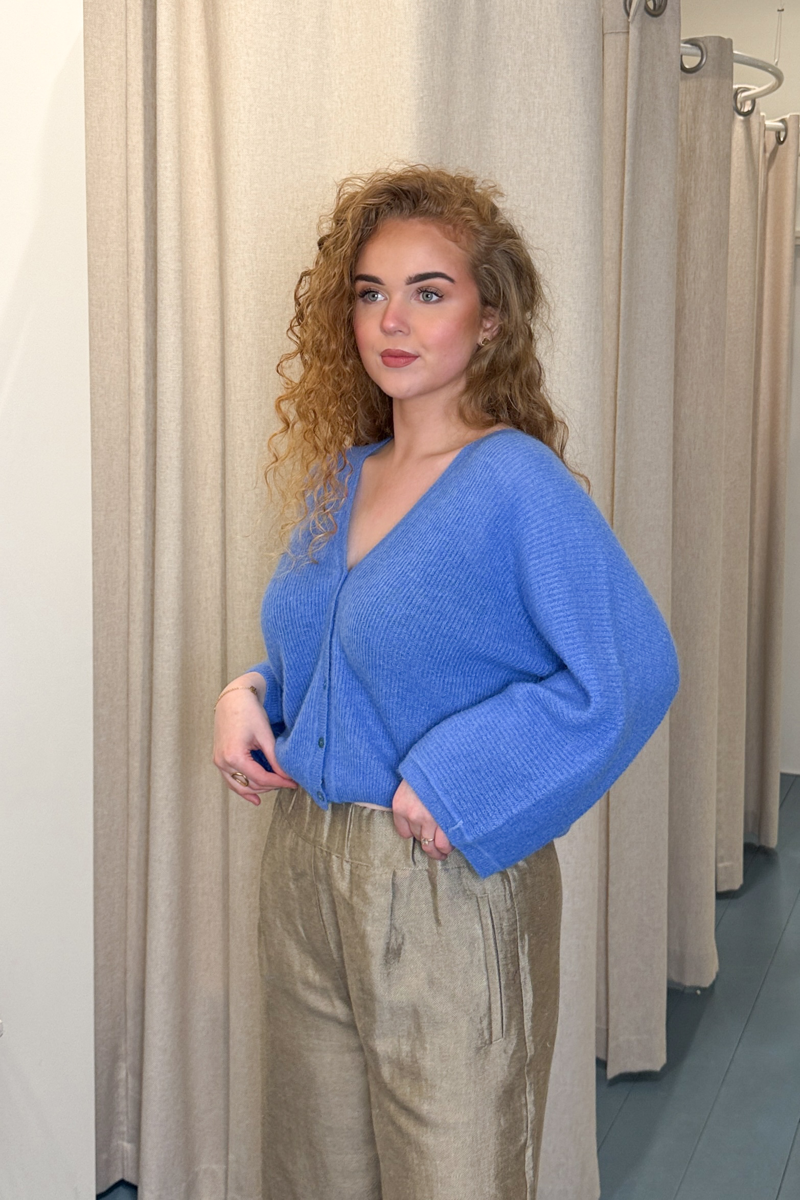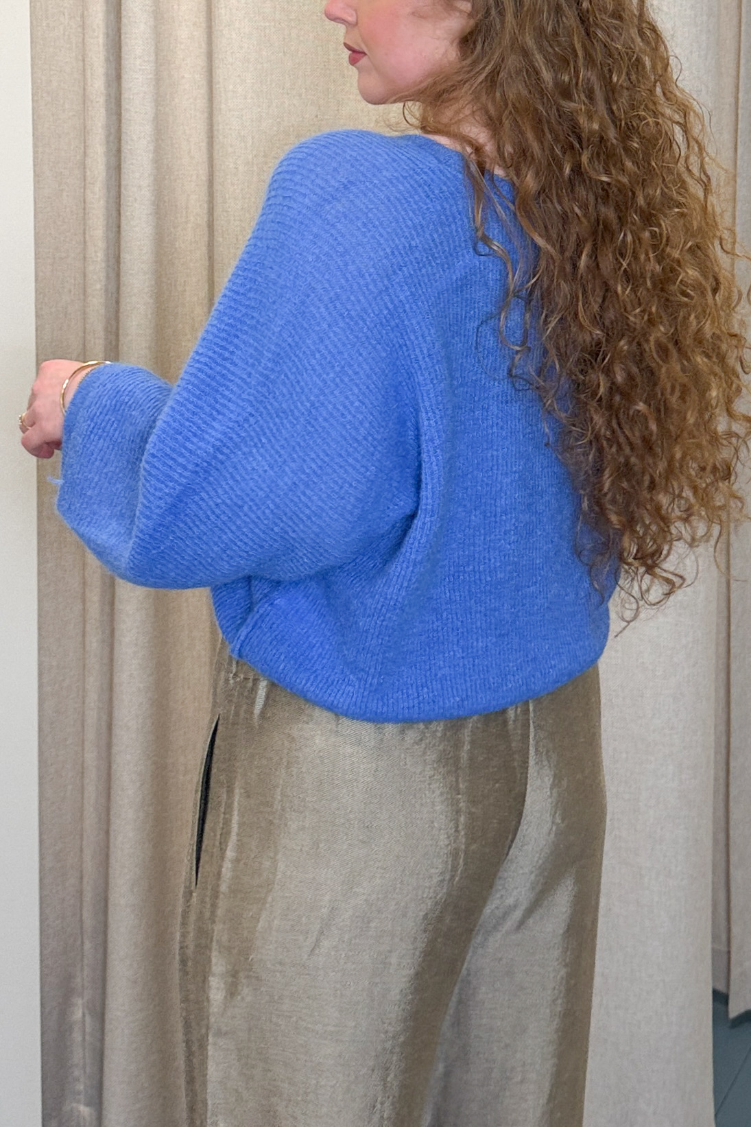 De indra cardigan is een bewuste toevoeging aan je garderobe, met een comfortabele pasvorm. De elegante halslijn en 7/8 mouwen geven het vest een verfijnde uitstraling, waardoor het een veelzijdig kledingstuk is dat je het hele jaar door kunt dragen. Draag ’m zoals jij wilt, met de knopen aan de voorkant of juist aan de achterkant.