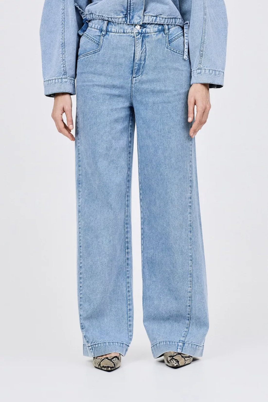 Deze jeansbroek voor dames kan je zonder nadenken eindeloos combineren. Deze denim broek heeft een hoge taille, wijde broekspijpen en zakken aan de voor- en achterkant.