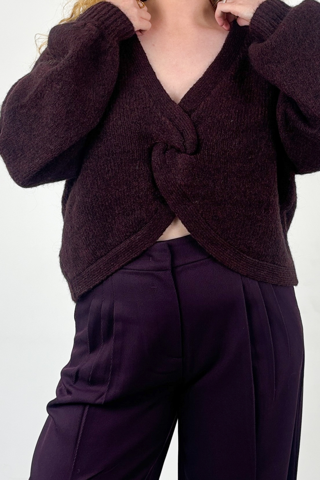 Materiaal: 25% gerecycled polyester, 38% polyamide, 15% mohair, 20% wol, 2% spandex